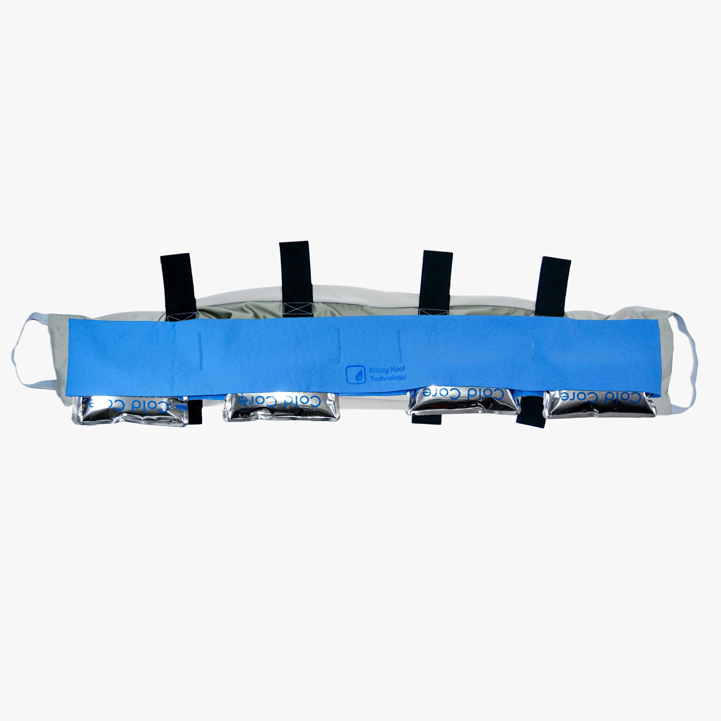 Position the Krazy Kool Tech System so that the middle of the System is around your upper back and snug under both armpits. Loop or double loop each elastic to the opposite end of the System, OR slide each elastic loop through BOTH ends of the Zone 1 System hanging from the neck.